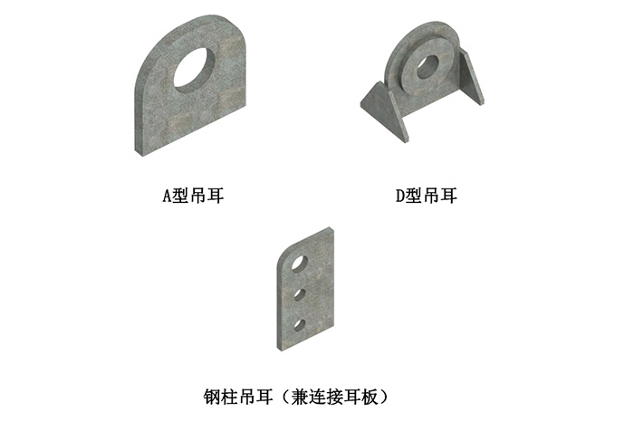1.根据构件重量和截面形式选用吊耳形式,其中钢箱梁一般采用D型吊耳,普通截面钢梁采用A型吊耳,钢柱一般采用连接耳板作为吊耳,上孔扩大处理;