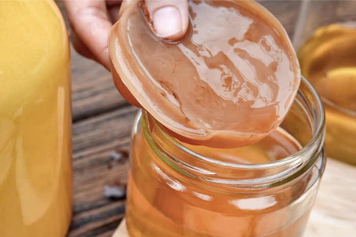 - 冷却和加入菌母:将加了糖的茶冷却至室温后,倒入发酵容器中,加入菌母和少量之前发酵的康普茶以启动发酵过程。