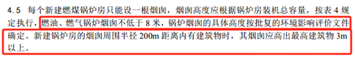 首先看下规范。根据GB13271-2014《锅炉大气污染排放标准》第4.5条的要求:燃油、燃气锅炉烟囱不低于8米,锅炉烟囱的具体高度按批复的环境影响评价文件确定。新建锅炉房的烟囱周围径200m 距离内有建筑物时,其烟囱应高出最高建筑物 3m以上。