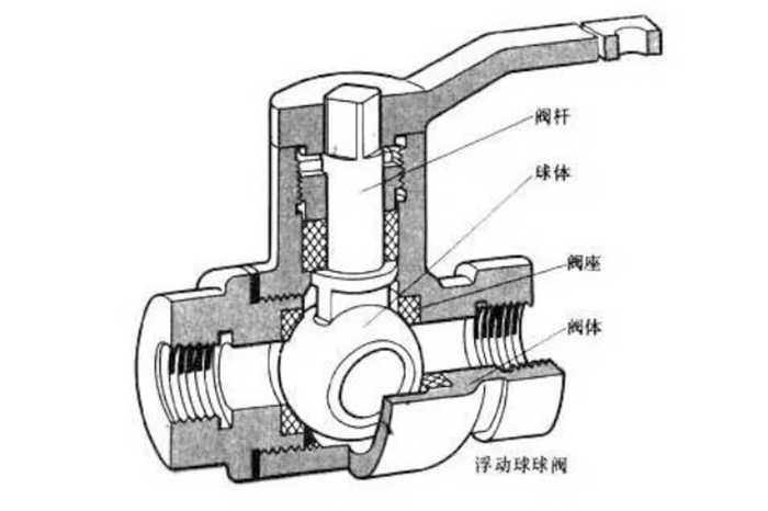 球阀的结构图如下:操作时通过旋转把手开关带动下方球体转动,球体是中空带通路的结构,在关闭阀门时,中空结构会积淤水,成为死水。