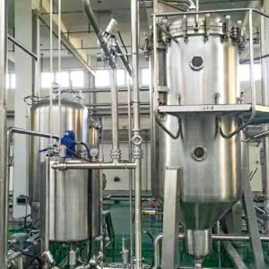 烛式硅藻土过滤系统是咖啡中最普遍使用的过滤方式之一。过滤系统以烛式过滤机为主,配置一系列附属设备,如前后缓冲罐、拌土添加罐以及相应管道、阀门、检测传感器等。烛式硅藻土过滤机主要由很多立式烛芯构成,过滤助剂(硅藻土)经过预涂、第二第三预涂后附着于滤芯外。过滤助剂通过拌土添加系统连续添加,预涂后可有效过滤冷凝沉淀物等。